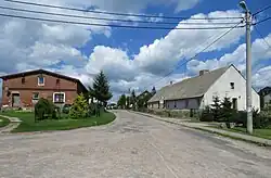Das Dorf liegt im historischen Westpreußen, etwa neun Kilometer östlich von Deutsch Eylau (Iława) und 59 Kilometer westlich von Allenstein (Olsztyn). Etwa sechs Kilometer westlich liegt der 27 Kilometer lange Geserichsee. Südöstlich am Dorf fließt die Drewenz und südlich deren Zufluss Iławka (Eylenz).