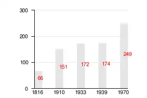 | 1858 | 111 | davon 93 Evangelische und 18 Katholiken[8] |