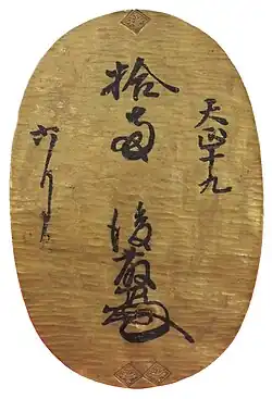 - ↑ 天正大判. In: 世界大百科事典 第2版 und 百科事典マイペディア bei kotobank.jp. Abgerufen am 23. März 2014 (japanisch).