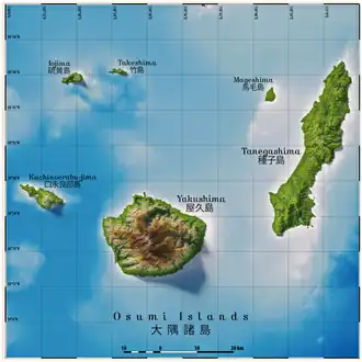 Der Archipel besteht im Wesentlichen aus den drei Hauptinseln Tanegashima, Yakushima und Kuchinoerabujima sowie den kleineren Inseln Mageshima, Kuroshima, Iōjima und Takeshima.