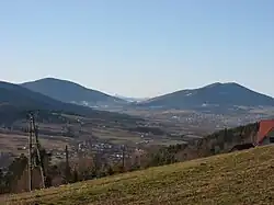 | Panorama der Inselbeskiden, die Śnieżnica etwa im rechten Drittel | ||