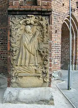 - ↑ Johannes Schulz, 1971, S. 97. der polnische Text lautet: „Maciej i Mikołaj Radowiccy dwaj bracia rodzeni, półczwarta jeden, a drugi półtrzecia lat przeżywszy, śmiertelności dług oddali, starszy dnia 11. młodszy dnia 12. Maja A. 1639 y tu w jednym grobie położenie, którym żałośni rodzice Maciej z małych Radowisk Radowicki z wojewóddztwa i powiatu chełmińskiego y Zofia y Kiszew Licecka y miłości na wieczną pamiątke ten nagrobek wyzstawili“