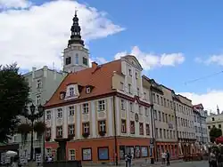- Die Pfarrkirche Hl. Kreuz und Kreuzherrenkommende (Kościół Św. Krzyża i klasztor Krzyżowców) wurde 1718/19 an der Stelle des ehemaligen Hospitals errichtet und 1633 durch Brand zerstört. Nach einem Umbau ab 1865 im Stil des Klassizismus wurde sie 1868 eingeweiht.