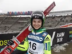 Bei den Nordischen Junioren-Skiweltmeisterschaften 2014 in Predazzo belegte sie den achten Rang im Einzel und holte die Silbermedaille mit der slowenischen Mannschaft. Bei der Olympiapremiere des Damenskispringens in Sotschi belegte sie Rang 26.