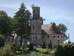 - Evangelische Kirche wurde nach Entwurf des Architekten Carl Gotthard Langhans in den Jahren 1796–1797 errichtet.[6] Die Kirche steht seit 1945 verlassen in einem ruinösen Zustand und droht einzustürzen. Die Warschauer Stiftung „Twoje Dziedzictwo“ (Dein Kulturerbe) sammelt seit 2013 Geldspenden, um vor allem das Dach zu reparieren und das Gebäude vor einem weiteren Verfall zu schützen.