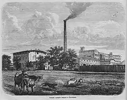 Im Jahr 1857 übernahm die Firma „Hielle & Dittrich“, die 1849 von den beiden Unternehmern Carl August Dittrich (1819–1886) und Karl Theodor Hielle (1822–1871) in Schönlinde in Nordböhmen gegründet worden war, von der Polnischen Bank die Textilbetriebe (Flachsspinnerei, Weberei und Bleicherei) in Żyrardów bei Warschau im damaligen Russisch-Polen. Anfangs betrieb die Firma 3000 Spindeln und hatte etwa 500 Beschäftigte. In der Folge firmierte das Unternehmen als „Zyrardower Manufacturen Hielle & Dittrich“. Die Spinnereien und Webereien wurden weiter ausgebaut und eine Fabriksiedlung für die Arbeiter des Werks entstand, so dass die Firma um 1883 bereits 1900 Beschäftigte und einen Umsatz von 1 Mill. Rubel hatte. Zum Firmenimperium gehörte außerdem die Baumwollfabrik in Zduńska Wola bei Sieradz im damaligen Russisch-Polen. Die Textilfabriken prägten in der Folge das Gesicht der Stadt Żyrardów und die Firma entwickelte sich zu einer der größten und modernsten Leinenfabriken des damaligen Europas.[4] Für die Mitarbeiter wurde ein komplettes Wohngebiet mit heute denkmalgeschützten Backsteinbauten errichtet. In der Fabriksiedlung befanden sich Wohnhäuser für Arbeiter und Führungskräfte sowie Kirchen, Schulen, Kindergärten, ein Krankenhaus und verschiedene Dienstleistungsbetriebe. Die Stadt wurde nach der Idee einer „Stadt im Grünen“ mit einem regelmäßigen Straßennetz, mit Gärten und viel Bäumen erbaut. Diese Siedlung besteht bis heute und bildet das Zentrum der Stadt. Die Stadt war geprägt durch ihre multiethnischen Bewohner. Hier lebten und arbeiteten neben den Polen auch Österreicher und Deutsche, Tschechen und Slowaken, Schotten und Engländer sowie Russen und Kosaken mit unterschiedlichen Konfessionen. Es gab zwei römisch-katholische Kirchen, eine lutherische Kirche, eine russisch-orthodoxe Kirche, eine Baptistenkirche und eine Synagoge für die Juden. 1889 wurde Żyrardów vom persischen Schah Nāser ad-Din Schāh besucht. Durch die Propaganda linksradikaler Parteien kam es im April 1883 in der Firma zum ersten Massenstreik in Polen. Nach dem Tod von Carl August Dittrich wurde das Unternehmen von seinem Sohn Carl Dittrich jr. (1853–1918) weitergeführt und 1885 in eine Aktiengesellschaft umgewandelt.[5]