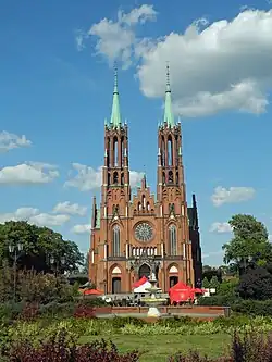 - Pfarrkirche Unsere Liebe Frau vom Trost, errichtet in den Jahren 1900–1903 im neugotischen Stil nach dem Entwurf von Józef Pius Dziekoński („Vater der polnischen Neugotik“), Vorbild war die Wiener Votivkirche, unter anderem erbaut aus Mitteln von C. Dittrich jr., der dafür auch über drei Millionen Ziegel aus seiner eigenen Ziegelei in Radziejowice bereitgestellt hat. Die Kirchenfenster wurden im Atelier von Józef Mehoffer angefertigt. Daneben befindet sich das Pfarrhaus (1903).