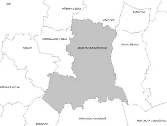 Nachbarorte sind Lužkovice im Norden, Veselá und Klečůvka im Nordosten, Lípa im Osten, Na Potůčkách, Na Kolibě, Cikánky, Želechovické Paseky, Slopné und Horní Lhota im Südosten, Obůrky, Nad Kouty und Provodov im Süden, Jaroslavické Paseky, Vavrušky und Jaroslavice im Südwesten, Pančava und Zlín im Westen sowie Výpusta, Příluky und Štákovy Paseky im Nordwesten.