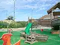 Im Dorf gibt es ein großes Gästegelände der Brauerei „HBH Juozo alus“ mit Biergärten, Restaurants, einem Reitzentrum und einem ausgedehnten Kinderspielgelände. So sieht das Gelände am frühen Morgen aus, bevor es für Besucher geöffnet ist: