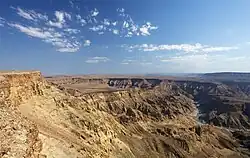 Der Oranje-Fluss bildet über die gesamte Südgrenze eine natürliche Grenze zur Republik Südafrika. ǁKharas besitzt eine außergewöhnliche Geologie, wovon auch der umfangreiche Diamanten- und Mineralienabbau in Oranjemund und Rosh Pinah sowie die heißen Quellen von Warmbad und ǀAi-ǀAis zeugen.