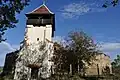 - Die evangelische Kirche, im 14. Jahrhundert errichtet und im 16. zu einer Kirchenburg mit einer ovalen sechs Meter hohen Wehrmauer ausgebaut, steht unter Denkmalschutz.[6] Im Westen der Kirchenburg steht der dreigeschossige Torturm. Die Wehrmauer hat zwei Reihen Schießöffnungen, der Wehrgang und die Vorratskammern im Inneren der Kirchenburg wurden abgetragen.[3]