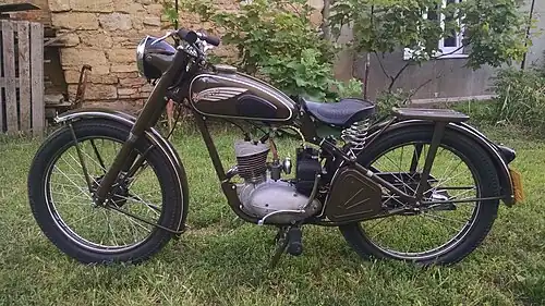 Das Modell ist ein Nachbau der unter Leitung von Hermann Weber konstruierten und von 1940 bis 1944 von der Auto Union AG im DKW-Stammwerk Zschopau gebauten DKW RT 125, deren Konstruktion nach dem Ende des Zweiten Weltkriegs nicht mehr geschützt (a) war und von verschiedenen Herstellern in mehreren Ländern nachgebaut wurde.