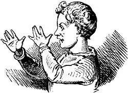 - Ein erhobener Zeigefinger als belehrende oder ermahnende Geste („Moralischer Zeigefinger“)