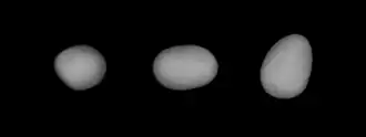Die bisherigen Beobachtungen weisen auf einen länglichen, unregelmäßig geformten Körper hin; die genaueste Durchmesserbestimmung (Geometrisches Mittel) liegt bei 219,374 km. Hinsichtlich der genauen Dimensionen liegt der präziseste Wert bei 344 × 246 × 205 km.