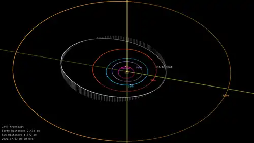 Die Sonnenumlaufbahn von (2447) Kronstadt ist mit einer Exzentrizität von 0,2644 stark elliptisch.