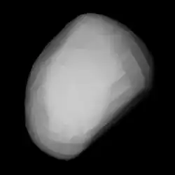 In den 1980er und 1990er Jahren gab es darüber hinaus weitere Untersuchungen, die aus den archivierten Lichtkurven ab 1980 Berechnungen mit unterschiedlichen Methoden zur Bestimmung meist von zwei alternativen Lösungen für die Position der Rotationsachse, des Drehsinns (immer retrograd), der Rotationsperiode (zwischen 5,0544 und 5,0549 h) und der Achsenverhältnisse von dreiachsig-ellipsoidischen Gestaltmodellen durchführten.[14][15][16] Dabei gab es immer wieder auch neue photometrische Beobachtungen, die weitere Lichtkurven lieferten, wie am 17. Februar 1988 am Osservatorio Astronomico di Torino,[17] vom 3. Februar bis 8. April 1994 am Roque-de-los-Muchachos-Observatorium auf La Palma,[18] vom 26. September bis 3. Oktober 1997 am Osservatorio Astrofisico di Catania in Italien (abgeleitete Periode 5,065 h)[19] sowie vom 11. April bis 7. Juni 2000 an der Außenstelle Tschuhujiw des Charkiw-Observatoriums in der Ukraine und am Krim-Observatorium in Simejis (abgeleitete Periode 5,054 h).[20]