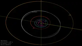 | Quelle: Wenn nicht einzeln anders angegeben, stammen die Daten vom JPL Small-Body Database. Die Zugehörigkeit zu einer Asteroidenfamilie wird automatisch aus der AstDyS-2 Datenbank ermittelt. Bitte auch den Hinweis zu Asteroidenartikeln beachten. | |