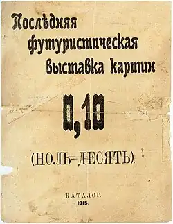 Die letzte futuristische Ausstellung der Malerei 0,10 (Null–Zehn) (russisch Последняя футуристическая выставка картин 0,10 (ноль–десять) Poslednjaja futuristitzeskaja wystawka kartin 0,10 (nol–desjat)) war eine Kunstausstellung, die vom 19. Dezember 1915 bis zum 19. Januar 1916 im Chudoschestwennoje bjuro (deutsch Kunst-Büro) von Nadeschda Dobytschina in Petrograd stattfand.[1] Die Ausstellung gilt, besonders wegen der präsentierten suprematistischen Werke von Kasimir Malewitsch (darunter das Schwarze Quadrat) und den Konter- und Eck-Reliefs Wladimir Tatlins, als eine der wichtigsten Kunstausstellungen der Moderne. In der Ausstellung waren jedoch insgesamt vierzehn Künstler vertreten, darunter sieben Frauen, von denen einige zu den bedeutendsten Künstlerinnen der russischen Avantgarde und Moderne überhaupt gezählt werden.[1] Die Ausstellung bot ein sehr heterogenes Bild der Avantgarde im Jahr 1915, was die spätere Rezeption, die sich im Wesentlichen auf Malewitsch und Tatlin konzentrierte, überwiegend vernachlässigte.[1]
