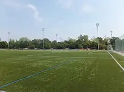 Platz 1 auf dem Wolfgang Frank Campus. Im Hintergrund ist das anliegende Bruchwegstadion zu sehen.