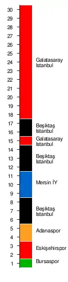 Meister wurde wie in der Saison davor Galatasaray Istanbul , insgesamt die fünfte Meisterschaft dieser Mannschaft.