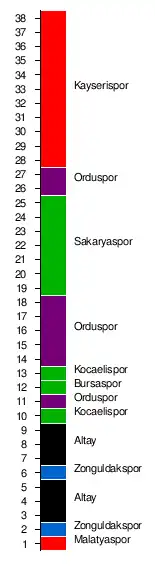 | Absteiger | Sakaryaspor, Orduspor, Kayserispor |