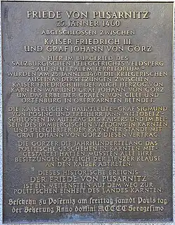 - 25. Januar: Der Frieden von Pusarnitz beendet den Erbfolgekrieg um das Cillier Erbe zwischen Kaiser Friedrich III. und dem Grafen Johann von Görz. Johann muss auf den Erwerb der Grafschaften Ortenburg und Sternberg verzichten und zusätzlich allen seinen Besitz östlich der Lienzer Klause an Friedrich III. abtreten.