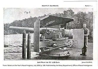 Die ursprünglichen Pivotlafetten waren für moderne Schiffe der damaligen Zeit nicht mehr zeitgemäß, weshalb diese angepasst werden musste. Um das Geschützrohr wieder in seine Ausgangsposition zurückführen zu können, verwendete Krupp bei der 15-cm-Schnelladekanone L/35 eine Gleitlafette. Dies war sich eine kleine unterhalb des Geschützrohres, welche auf Rollen gelagert war und mithilfe von Hydraulikzylindern das Geschützrohr wieder zurückführte.[3][4]