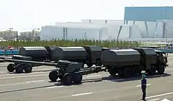 Kasachische 2А36 mit Zugfahrzeug Kamaz-63501 bei einer Parade