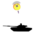 Der Fallschirm der Submunition entfaltet sich. Durch den speziellen Fallschirm bewegen sich die Submunitionen in einer Korkenzieherbahn nach unten, während die Sensoren das Zielgebiet absuchen. |