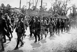 Im Februar 1943 erfolgte der Rückzug auf die Insel Bougainville, wo die 17. Armee auf der vorgelagerten Insel Erventa ihre Quartiere bezog.[8] Inzwischen war die 6. Division der 17. Armee unterstellt worden, die die Gesamtstärke auf ca. 38.000 Mann brachte.[8]