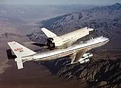 - 1977: Das Space Shuttle Enterprise tritt seinen Jungfernflug unbemannt auf dem Rücken einer Boeing 747 an.