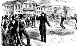 Abraham Lincoln wird während einer Theatervorstellungvon John Wilkes Booth erschossen. | |