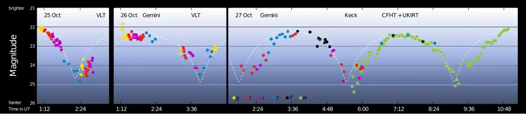 - ↑ Julia Merlot: Forscher sichten interstellares Objekt. In: Spiegel.de. 27. Oktober 2017, abgerufen am 27. Oktober 2017.