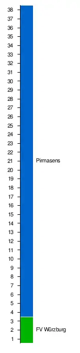 | 20. | FK Pirmasens | 38 | 1 | 4 | 33 | 25:120 | −95 | 6:70 |