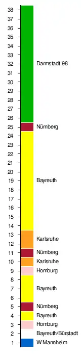 | 7. | Karlsruher SC | 2:0 | 3:1 | 2:3 | 4:1 | 5:3 | 1:1 | 2:1 | 0:2 | 3:0 | 3:0 | 2:2 | 1:2 | 2:0 | 4:3 | 3:2 | 3:0 | 4:0 | 6:0 | 1:0 | |