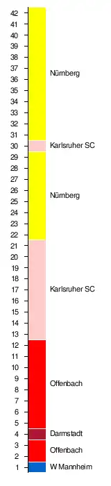 | 2. | Karlsruher SC | 0:1 | 3:1 | 2:0 | 5:2 | 4:0 | 3:0 | 2:1 | 2:2 | 4:2 | 3:1 | 2:1 | 4:0 | 2:0 | 1:0 | 2:1 | 10:0 | 5:2 | 2:1 | 4:2 | 1:1 | |