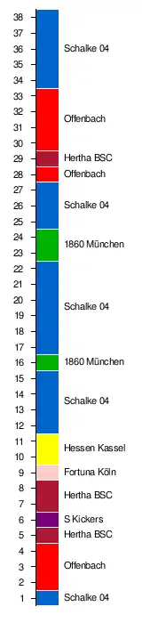 | 1. | FC Schalke 04 | 2:1 | 3:0 | 3:1 | 1:1 | 1:0 | 1:1 | 2:0 | 2:0 | 2:2 | 1:1 | 3:1 | 2:2 | 3:3 | 2:0 | 1:1 | 4:0 | 4:0 | 3:3 | 6:0 | |