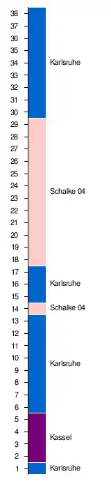 | 2. | FC Schalke 04 | 3:3 | 4:2 | 3:1 | 3:3 | 5:0 | 6:0 | 2:1 | 6:2 | 1:1 | 1:5 | 6:0 | 3:0 | 5:1 | 5:2 | 3:0 | [1] | 3:0 | 3:1 | 2:0 | |
