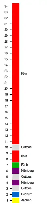 1. 1. FC Köln   3:0 4:1 6:1 1:1 1:0 2:2 4:0 1:0 3:1 2:1 3:0 6:3 4:1 3:0 1:1 1:2 1:1