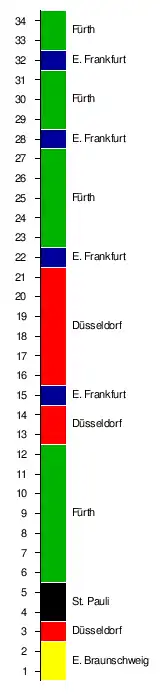 | FC St. Pauli | 2:2 | 2:0 | 1:3 | 5:0 | 4:2 | 2:1 | 0:0 | 3:1 | 2:1 | 2:1 | 2:0 | 2:1 | 0:0 | 2:3 | 1:0 | 3:1 | 3:0 | |
