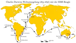 - 1836: Die Beagle unter dem Kommando von Robert FitzRoy mit Charles Darwin an Bord legt nach ihrer Südamerika-Expedition wieder in England an. Darwins Werk wird sich auf Erkenntnisse aus dieser Reise stützen.