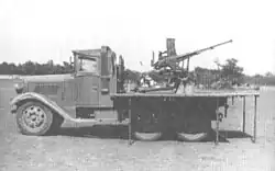 Ab Mai 1940 wurden dann seitens der Artillerieschule Mechanisierungsversuche mit der auf einen Typ 94 6-Rad-Lastkraftwagen montierten Typ 98 20-mm-Flugabwehr-Maschinenkanone gemacht. Das Geschütz wurde dazu ohne Räder mit der Achse auf eine einfache Befestigungskonstruktion aus geschweißten Stahlblechen gesetzt. Die Räder wurden auf dem Fahrzeug mitgeführt, so dass jederzeit auch wieder die Verwendung als abgesetztes Geschütz möglich war. Die Seitenteile der Ladefläche der Lastkraftwagen wurden zum Feuern heruntergeklappt und durch nivellierbare Stützen und Auflagen zum Boden hin gesichert. Dies stabilisierte die Ladefläche und vergrößerte die Standfläche für die Bedienmannschaft. So war ein Schießen mit etwa 5 % geringer Genauigkeit als beim Einsatz vom Boden aus möglich. Ein Abfeuern ohne Vorbereitung war nur im Notfall vorgesehen, da dabei die Genauigkeit deutlicher abnahm.[9] Ab Dezember 1940 wurden auch Nissan 80 4-Rad-Lastkraftwagen und Nissan 180 4-Rad-Lastkraftwagen als Fahrzeuge getestet. Diese erwiesen sich jedoch als zu instabil als Waffenplattformen. Anfang 1941 wurde dann die Verwendung der Waffe auf der Ladefläche des Typ 94 6-Rad-Lastkraftwagens offiziell genehmigt. Eine spezielle Benennung ist jedoch nicht erfolgt. Der Einsatz solcher Fahrzeuge erfolgte unter anderem bei der 1. Panzerdivision während der Operation Ichi-Gō in China im Sommer 1944.[3]