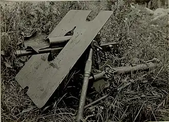 Das Gestell bestand aus einem Stahlrohr mit zwei verstellbaren Seitenbeinen und einem Mittelbein, welches mit einem Rückstoßspaten ausgestattet war. Dieses konnte entweder vor oder hinter dem Geschütz platziert werden, was die Einsatzmöglichkeiten deutlich erhöhten. Zusätzlich konnte das Gestell mit einem Schild aus Stahl ausgerüstet werden, um die Sicherheit der Mannschaft zu erhöhen. Für einen schnellen Transport konnte man zwei Räder an das Geschütz montieren. Um die Größe des Geschütztes verringern oder der Bodenbeschaffenheit anpassen zu können, konnte man die Beine des Gestells einklappen. Dadurch war auch der Transport durch eine Person, einem Lastentier oder zwei Hunden möglich.[1]