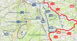 - ↑ das niederländische Korps war geographisch ungünstig disloziert und benötigte Zeit für seine Aufmarschphase