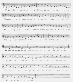 Als musikalische Grundlage wählte Panufnik die wahrscheinlich aus dem 13. Jahrhundert stammende Bogurodzica, die erste bekannte Hymne in polnischer Sprache. Die drei Visionen, die zusammen den ersten Teil bilden, basieren auf den Intervallen der ersten vier Noten der Bogurodzica-Melodie: Quarte in Vision I, Große Sekunde in Vision II sowie Kleine Sekunde in Vision III. Vision I eröffnet die „Sinfonia Sacra“ als feierliche Fanfare der 4 Trompeten, die rund um das Orchester positioniert sind. Vision II wird von den Streichern allein bestritten. Sie soll nach den Worten des Komponisten[2] „eine mystische und kontemplative Atmosphäre schaffen“. Vision III ist „Ausdruck eines verwickelten Konflikts, der sich bis zu Aufruhr und Protest steigert, bis ein plötzlicher Schnitt völlige Stille herbeiführt.“ Der abschließende Hymnus besitzt gemäß Panufnik „den Charakter eines einfachen Gebets zur Muttergottes, das Anbetung und Herzenswarme ausdrücken soll. Es beginnt pianissimo mit Flageolett-Tönen in den Streichern, wächst zunehmend zu einem immer inbrünstigeren Bittgebet, bis schließlich die authentische Melodie der Bogurodzica durchbricht […].“ Zum abschließenden Höhepunkt greifen die Trompeten die Musik der Vision I wieder auf.