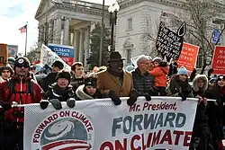 Die Organisation protestiert gegen die Keystone-XL-Pipeline, die Ölsand aus dem kanadischen Alberta quer durch die Vereinigten Staaten von Amerika an den Golf von Mexiko transportieren soll. 350.org sah die Verhinderung des Pipeline-Projektes als kritischen Punkt, aber auch als Chance für die Umweltbewegung in den USA und für die Regierung Obama. Der NASA-Klimatologe James Hansen nannte die Genehmigung der Pipeline aufgrund der mit dem Teersandabbau verbundenen enormen CO2-Emissionen ein „game over“ für das Klima der Erde.[7]
