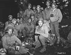 Im Oktober wurde sie durch das japanisch-amerikanische 442nd Regimental Combat Team verstärkt. Während der Kämpfe in den Vogesen wurde das 1st Battalion, 141st Infantry von seinem Regiment abgeschnitten und wurde erst nach mehreren Tagen durch das 442nd RCT wieder freigekämpft.[5] In schweren Angriffskämpfen überschritt die Division Ende November die Meurthe und den Pass Sainte Marie, um in die Elsässische Ebene zu gelangen.