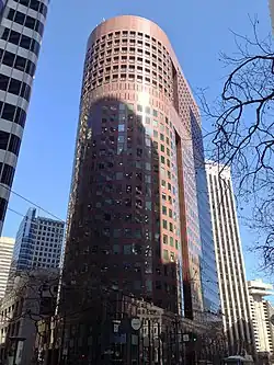 Das 27-geschossige Haus wurde von Skidmore, Owings and Merrill entworfen[1] und 1986 fertiggestellt. Andere Angaben nennen 24 oberirdische Geschosse.[2] Die Höhe beträgt 94 Meter. Markant ist die aufgrund der Ecklage spitz nach Osten zulaufende Gebäudeform. Nach Westen besteht ein runder Abschluss, des somit grob dreieckigen Hauses. Bauherr und jetziger Eigentümer ist die Honorway Investment Corporation. Das Haus ruht auf einer zweigeschossigen Basis, in der Einzelhandelseinrichtungen bestehen. Daraus erwächst der eigentliche Turm, dessen westlicher Teil in Form eines Zylinders, der östliche als Prisma ausgestaltet ist. Die unteren 16 Geschosse sind für eine Büronutzung konzipiert. Insgesamt sind 23.482 m² Büroflächen vorhanden. Die Gesamtfläche umfasst 34.700 m². Es besteht ein Technikgeschoss und im oberen Teil sechs Geschosse mit Wohnungen. Für die Fassade wurde roter Granit eingesetzt.