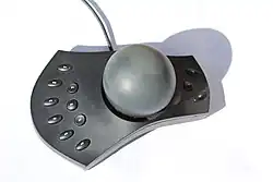 Auf einem stationären Untersatz ist flexibel ein Steuerkörper in Form einer Kugel oder eines Pucks angebracht. Schub- und Drehkräfte, die der Benutzer auf den Steuerkörper ausübt werden in Eingabebefehle umgesetzt.[2] Ein solches System verfügt über drei translatorische und drei rotatorische Freiheitsgrade.[3] „3D-Mäuse oder Steuerkugeln messen über den Federdruck eine statische Auslenkung für Position und Winkel einer Kugel, die von der Hand des Benutzers umschlossen wird. Die Auslenkungswege und -winkel sind sehr klein, so daß die Auflösung dieser Geräte begrenzt ist. Deshalb werden Steuerkugeln vorwiegend für Geschwindigkeitssteuerungen verwendet.“[4]