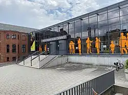 Die zentrale Ausstellung der 4. Sächsischen Landesausstellung wurde im Audi-Bau in Zwickau präsentiert. Bei dem rund 115 Meter langen Klinkerbau handelt es sich um ein zweigeschossiges und vollunterkellertes Montagegebäude. Dieses wurde 1937 und 1938 im Rahmen eines größeren Werkausbaus durch den Architekten Theophil Quaysin entworfen und unter dessen Leitung errichtet.[7] Mit der Bauausführung war der Bauunternehmer Curt Leutsch aus Zwickau betraut.[8] Auftraggeber war der Automobilkonzern Auto Union AG. Das Gebäude diente als Fertigungsstätte der ersten serienmäßig hergestellten Kleinwagenreihen mit Frontantrieb, den DKW Front-Modellen. Nach Ausbruch des Zweiten Weltkrieges verlagerte sich der Produktionsschwerpunkt im Werk Audi auf die Fertigung von Geschützen, Luftwaffenzubehör sowie die Montage von LKW Typ Steyr-1500.[9]